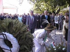 A szentmisét követően a templom előtti téren az 1993-ban emelt szobor megkoszorúzására került sor.
